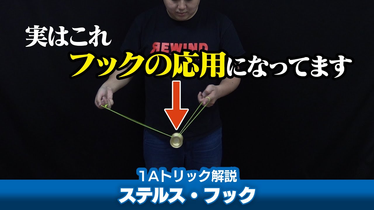 ポイントは人差し指の使い方。通常のフックだと、自分から見た時、右利きの場合は左手人差し指が常にヨーヨーの左上にいます。しかしステルス・フックの場合、右手とヨーヨーの間に左手人差し指が来ます。この構造さえ間違えなければ、フックができている人であればすぐ習得できると思われます。